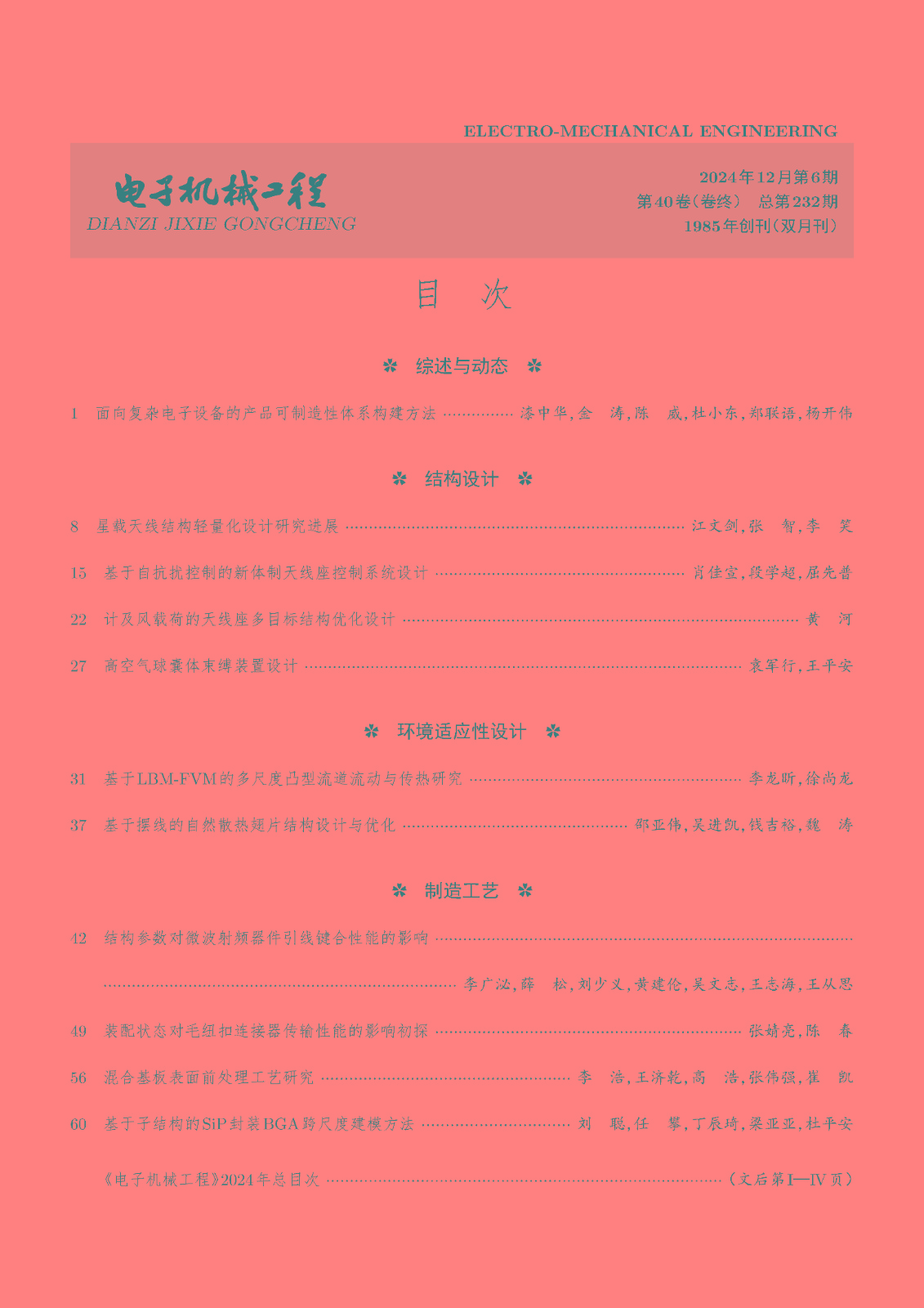 《电子机械工程》创刊四十周年纪念专...